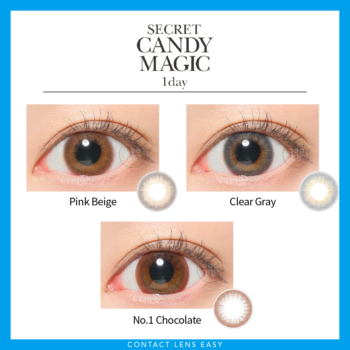日本Secret Candy Magic 1 day大眼 Color Con,由AKB48板野友美代言,隱形眼鏡直徑高達14.5mm,完美展現亮麗大眼效果!